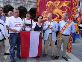 Südtiroler demonstrieren zusammen mit Venezianern für Eigenständigkeit auf dem Markusplatz; (copyrightfrei, Foto: SHB)