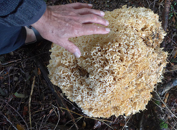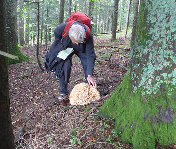 Christian Wirth, ehemaliger Gymnasiallehrer, wohnhaft in Fahrnau, war überrascht als er kürzlich in einem Wald bei Häg-Ehrsberg einen Riesenpilz mit etwa 40 cm im Durchmesser entdeckte. Der ockerfarbige Fruchtkörper mit seinen krausen Verzweigungen ähnele einem grossen Badeschwamm. Christian Wirth kannte die Krause Glucke (Sparassis crispa), war jedoch überrascht, dass der Pilz am Fusse einer Fichte wuchs. Die Krause Glucke (auch Fette Henne genannt) wächst besonders an der Waldkiefer, seltener auch an Lärche, Fichte und Douglasie.